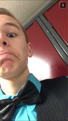 Conrad snapped this picture of Kaden's snap chat. Kaden is all dressed up for formal day at his school.